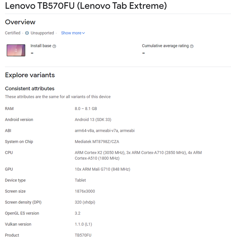 Informacją o nowości podzielili się nasi koledzy z XDA-Developers. Urządzenie zostało dostrzeżone w bazie Google Play Console. Tablet figuruje w dokumentach jako Lenovo Tab Extreme. Nowość występuje pod numerem modelu TB570FU. Urządzenie otrzyma wyświetlacz o rozdzielczości 3000×1876 pikseli i cienkie ramki.