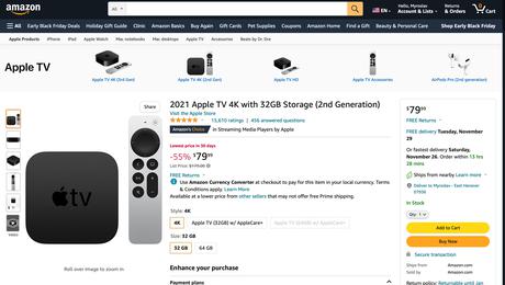 Z okazji wyprzedaży z okazji Czarnego Piątku na Amazon można teraz kupić dekoder Apple TV 4K drugiej generacji w specjalnej cenie.
