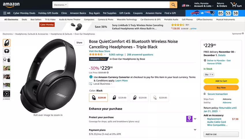 Na Amazonie ruszyła wyprzedaż z okazji Cyber Monday. Najwyższej klasy słuchawki bezprzewodowe Bose QuietComfort 45 są dostępne w obniżonej cenie.