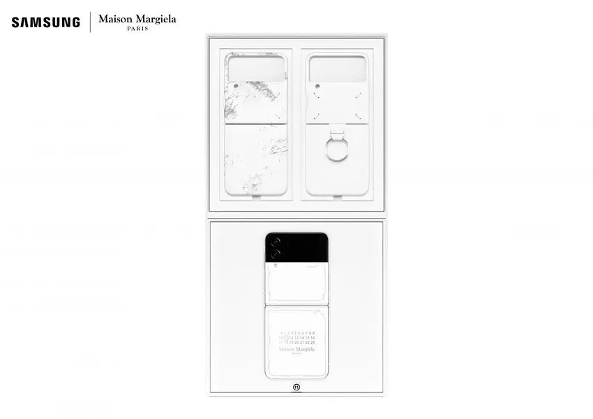 Samsung Galaxy Flip 4 Maison Margiela Edition może pochwalić się białym, matowym kolorem z techniką zdobienia Maison Margiela. Na tylnych panelach znajdują się subtelne półprzezroczyste linie, które wyznaczają wewnętrzny układ smartfona. Nowość dostarczana jest z rozszerzonym opakowaniem, motywem sygnowanym przez Maison Margiela i w specjalnym pudełku prezentowym.