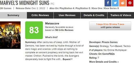 Wersja PC gry Marvel's Midnight Suns otrzymała ocenę 83 zarówno na Metacritic jak i Opencritic.
