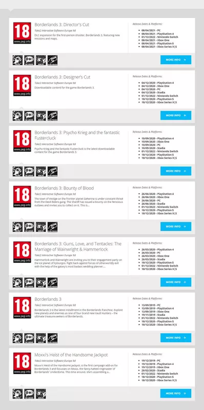 Portal Gematsu poinformował, że europejska komisja ratingowa PEGI nadała rating wiekowy wersji Nintendo Switch strzelanki Borderlands 3.