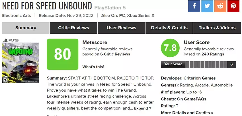 Nowa odsłona wyścigowej franczyzy od Electronic Arts została pozytywnie przyjęta zarówno przez graczy, jak i krytyków. W chwili pisania newsa na agregatorach są następujące notowania:
