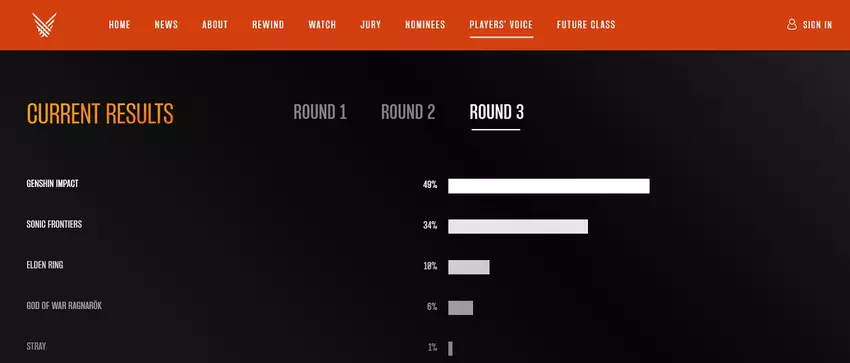 Głośne premiery, takie jak Elden Ring i God of War: Ragnarok, straciły szanse na zwycięstwo - w chwili pisania tego tekstu głosowało na nie 10 i 6 procent graczy. Uroczy kotek ze Stray otrzymał do tej pory tylko 1% wsparcia.