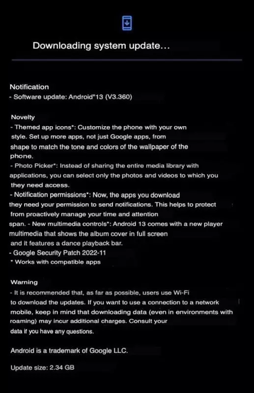 Deweloperzy zainstalowali w systemie listopadową łatkę bezpieczeństwa Google, która likwiduje wiele luk. Oprócz tego smartfony dostały wszystkie najważniejsze funkcje systemu operacyjnego Android 13.