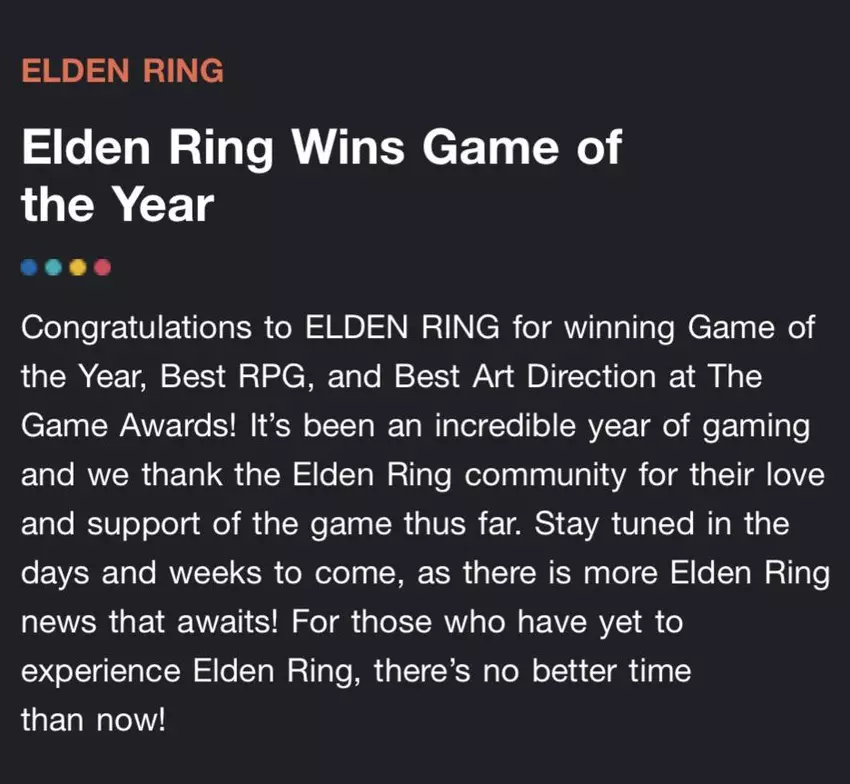 Nazwana grą roku przez The Game Awards 2022, Golden Joystick, Japan Game Awards i inne równie prestiżowe nagrody, jest świadectwem doskonałości gry.