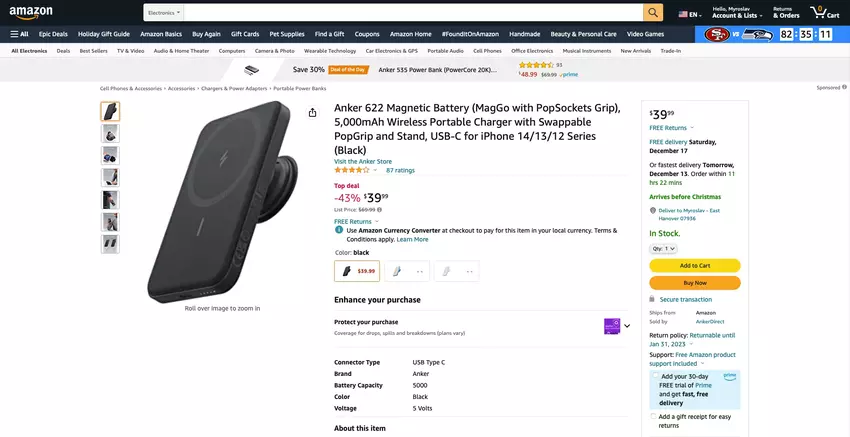 Anker 622 Magnetyczna bateria: 5000mAh MagSafe bateria z PopSockets dla iPhone 12, iPhone 13 i iPhone 14 na 30 dolarów taniej