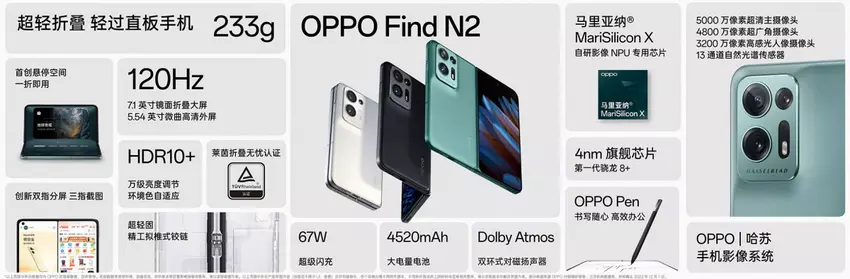 OPPO Find N2 - Snapdragon 8+ Gen 1, dwa wyświetlacze 120Hz LTPO AMOLED, aparat Hasselblad, obsługa rysika OPPO Pen i Android 13 od 1145 dolarów