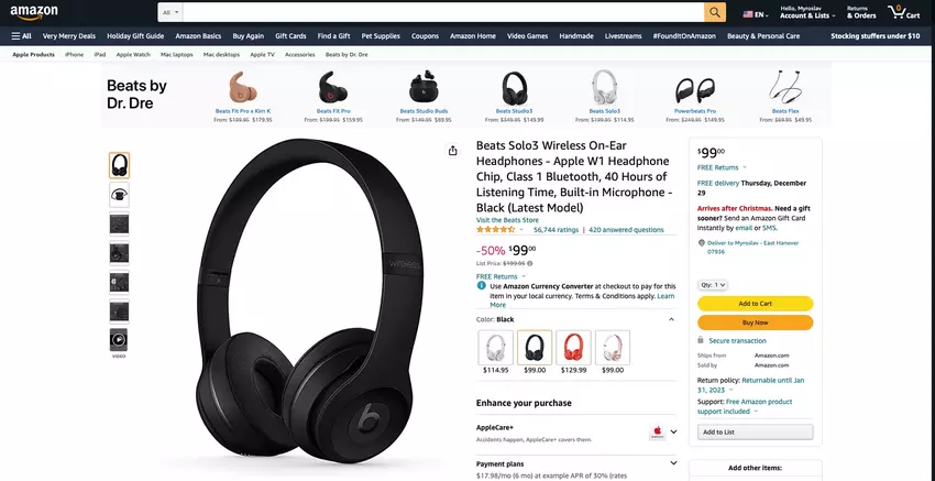 Apple w okresie przedświątecznym obniżyło cenę bezprzewodowych słuchawek Beats Solo3.