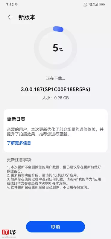 Dla Huawei Mate 50 Pro dostępna jest wersja 0,98 GB firmware HarmonyOS 3.0.0.187 (SP1C00E185R5P4).