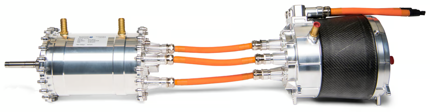 Silnik elektryczny Equipmake (z lewej) i falownik (z prawej)