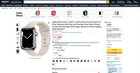 Oferta dnia: 45mm Apple Watch Series 7 z LTE na wyprzedaży na Amazon za 220 dolarów taniej