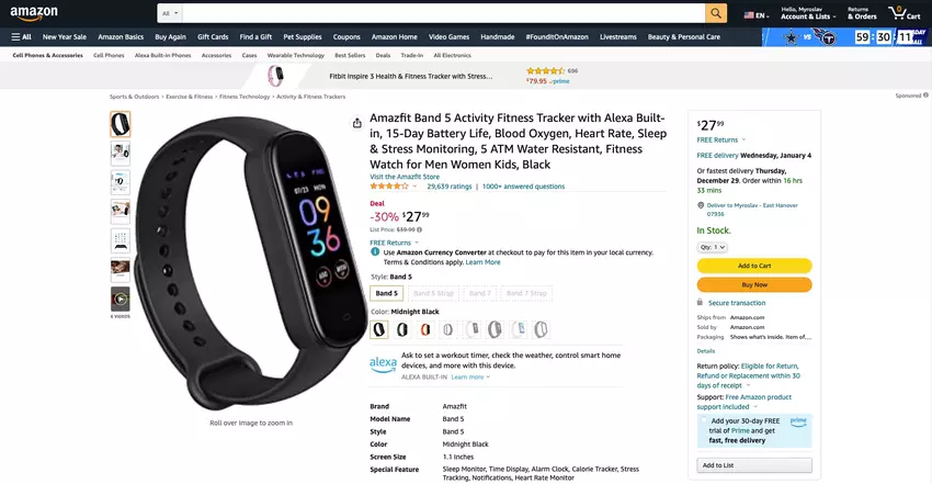 Inteligentna bransoletka Amazfit Band 5 jest teraz dostępna w obniżonej cenie na Amazonie.