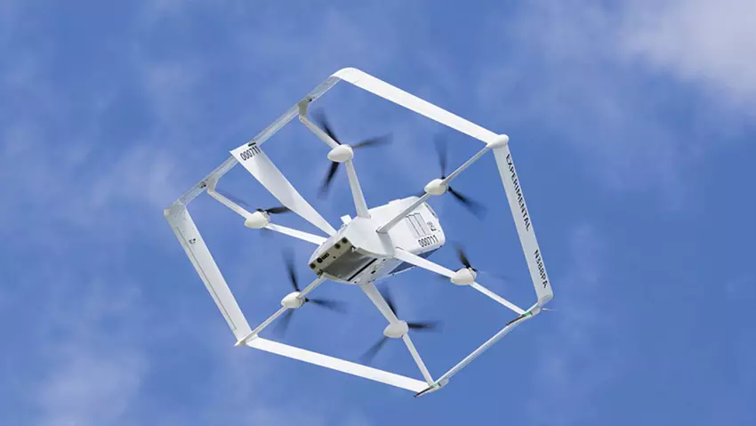 Amazon używa drona MK27-2. Jest to hexacopter z sześcioma śmigłami i jest cichy. Dostawa będzie monitorowana przez operatora.