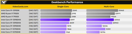 Mobilny układ Intel Core i9-13980HX zapewnia wydajność na równi z flagowym procesorem desktopowym Ryzen 9 7950X