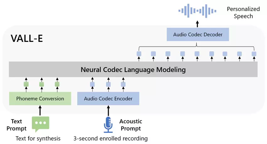 Microsoft nazywa VALL-E "neuronowym modelem językowym kodeka". Ta sztuczna inteligencja jest w stanie naśladować każdy ludzki głos, a do tego wystarczy, że wysłucha 3 sekund oryginalnego głosu. SI rozkłada informacje na części składowe i syntetyzuje warianty jego brzmienia w różnych frazach, w wyniku czego potrafi dokładnie odtworzyć tembr i emocjonalny ton mówcy.