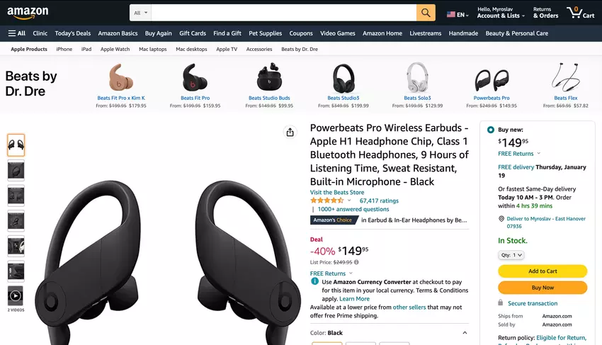 100 dolarów off: Powerbeats Pro z AirPods-like chip na sprzedaż na Amazon za 149 dolarów