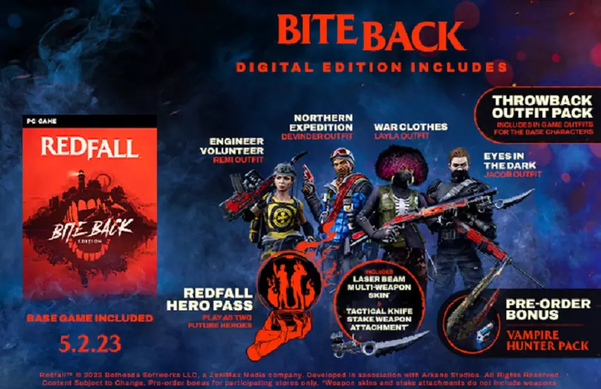 Do nabycia jest gra podstawowa Redfall oraz edycja Bite Back. Gracze otrzymają przydatne w grze bonusy za zamówienie gry w przedsprzedaży i zakup edycji rozszerzonej.