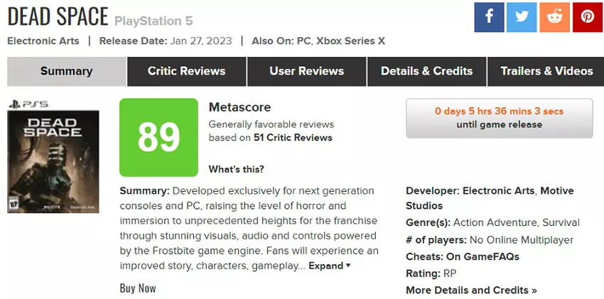 W przeddzień premiery remake'u horroru Dead Space na agregatorach pojawiły się pierwsze recenzje krytyków. I trzeba przyznać, że odświeżona wersja kultowego horroru wywołała najwięcej pozytywnych wrażeń u recenzentów.