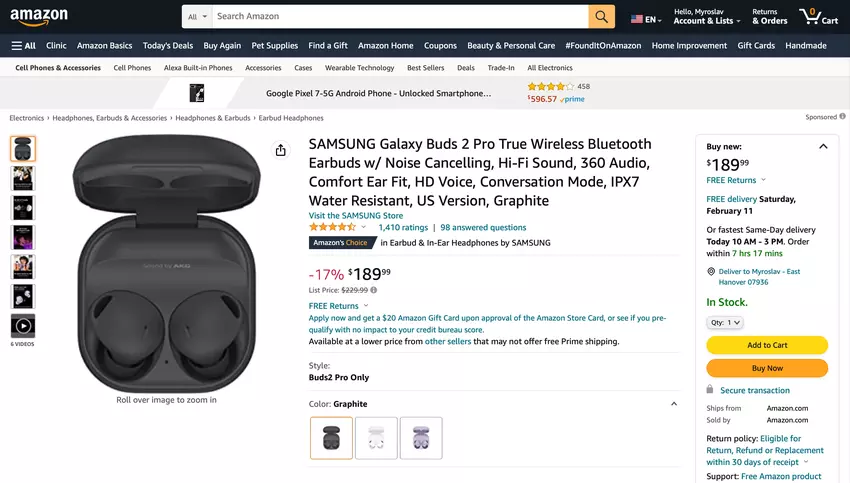 Oferta dnia: Samsung Galaxy Buds 2 Pro z ANC i do 29 godzin pracy na baterii na sprzedaż na Amazon za 40 dolarów taniej