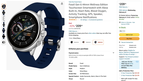 Smartwatch Fossil Gen 6 Wellness Edition jest dostępny z dobrym rabatem na Amazonie - check price on amazon.