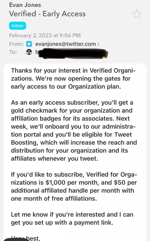The Information uzyskało wewnętrzne maile wysyłane przez menedżerów produktu Twittera do niektórych firm. Mówi się, że marki będą musiały płacić 1000 dolarów miesięcznie lub stracą swoje złote kleszcze. Kiedy to jednak nastąpi - menedżerowie nie precyzują.