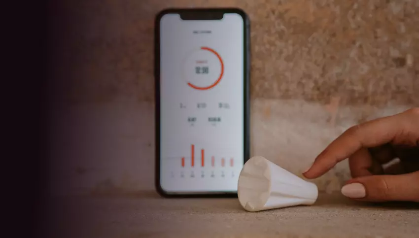 Kubek łączy się z aplikacją mobilną, która powiadamia o jego zapełnieniu. Aplikacja może również stworzyć plik PDF do pobrania, który właścicielka może udostępnić swojemu lekarzowi.