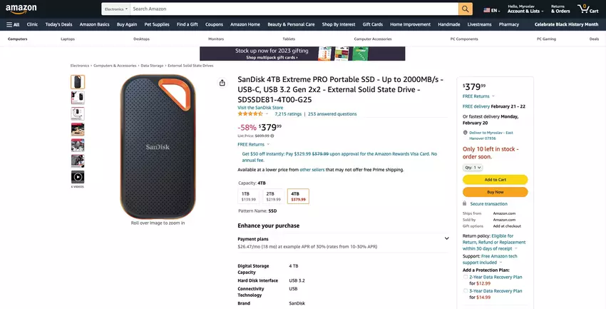 - SanDisk Extreme PRO 4TB - 379 $309.99 $394.99, -22%.
