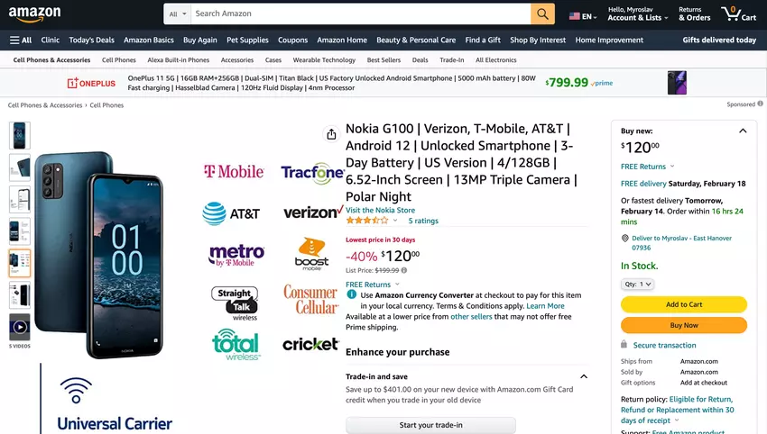 Nokia G100 z układem Qualcomm Snapdragon 662 i baterią 5000mAh na sprzedaż na Amazon za 120$ (80$ taniej)