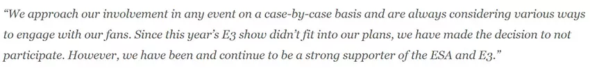 I choć koledzy milczą, to Nintendo oficjalnie potwierdziło, że udział w targach dla graczy nie jest w jego planach.