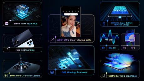 Nowy produkt jest następcą zeszłorocznego SPARK 9 Pro. Gadżet posiada 6,8-calowy wyświetlacz LCD o rozdzielczości Full HD+ i częstotliwości odświeżania 90 Hz. Urządzenie napędza procesor MediaTek Helio G88 sparowany z 8 GB pamięci RAM LPDDR4x oraz 128/256 GB pamięci masowej. Nowość dostaje także slot dual-SIM i microSD, zamontowany z boku skaner linii papilarnych, główny potrójny aparat z 50 MP sensorem głównym i pojedynczą 32 MP kamerą przednią.