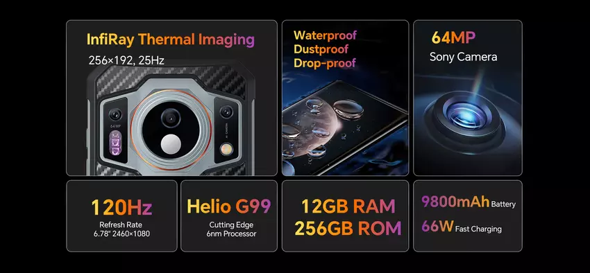 Nowy produkt jest ulepszoną wersją zeszłorocznego OUKITEL WP21. Kluczową nowością jest pojawienie się kamery termowizyjnej. Wyposażono ją w sensor o rozdzielczości 256 x 192 punkty przy 25 Hz.
