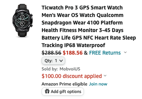 Mowa o zegarku TicWatch Pro 3. Jest on w sprzedaży na Amazonie za check price on amazon, ale dzięki kuponowi sprzedawcy można kupić gadżet ze zniżką 100 dolarów.