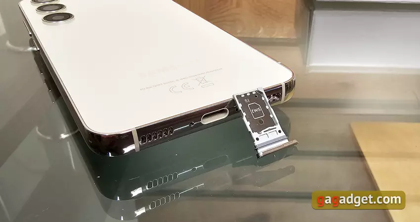 Tacka bez niespodzianek: mieści dwie karty SIM. Jest też obsługa eSIM. O slocie MicroSD chyba zapomniano, we flagowcach na pewno. Owszem, każe to mocno zastanowić się nad wymaganą pojemnością przed zakupem. Ale jest w tym też pewna logika: pamięć wewnętrzna w smartfonach wygrywa z kartami pamięci zdecydowanie pod względem szybkości działania.