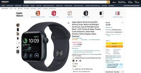 Apple Watch SE (2nd Gen) jest w sprzedaży w obniżonej cenie na Amazonie. Ich cena wynosi check price on amazon taniej. Jest to obecnie najtańszy smartwatch firmy.