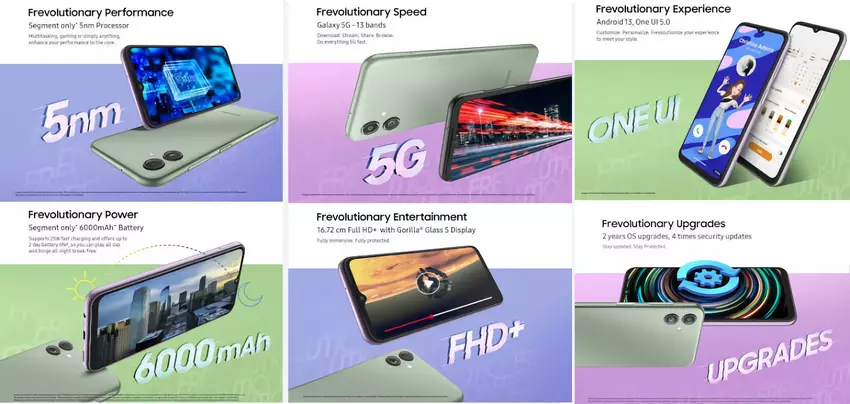 Samsung Galaxy F14 5G 24 z ekranem 90Hz, układem Exynos 1330 i baterią 6000mAh odsłonięty 24 marca