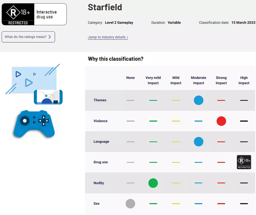 Ogólnie rzecz biorąc, kosmiczne RPG Bethesdy otrzymuje ocenę R/Restricted (18+).