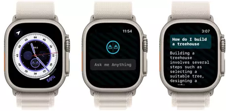Aplikacja dodaje specjalny widget do tarczy zegarka, który daje szybki dostęp do ChatGPT. Możesz zadawać sztucznej inteligencji pytania za pomocą wiadomości tekstowych lub komend głosowych. Dzięki temu jest to poręczna alternatywa dla asystenta głosowego Siri, który w większości przypadków odpowiada na zapytania w formacie wyników internetowych przesyłanych na iPhone'a.