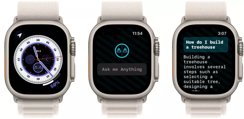 Aplikacja dodaje specjalny widget do tarczy zegarka, który daje szybki dostęp do ChatGPT. Możesz zadawać sztucznej inteligencji pytania za pomocą wiadomości tekstowych lub komend głosowych. Dzięki temu jest to poręczna alternatywa dla asystenta głosowego Siri, który w większości przypadków odpowiada na zapytania w formacie wyników internetowych przesyłanych na iPhone'a.
