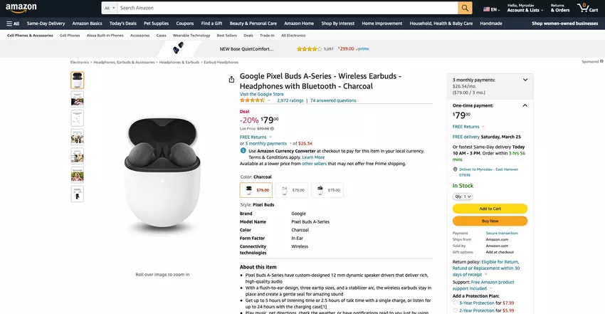 Google Pixel Buds A z ochroną IPX4, Adaptive Sound i obsługą Fast Pair w sprzedaży na Amazon za 79 dolarów (20 dolarów taniej)