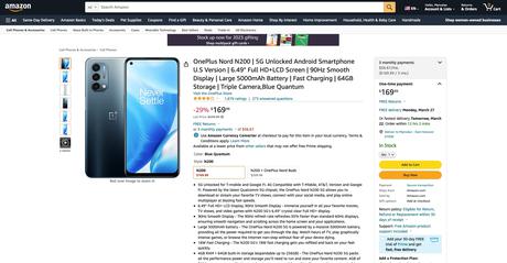OnePlus Nord N200 z ekranem 90Hz, układem Snapdragon 480 i 5G w sprzedaży na Amazonie za 70 dolarów taniej