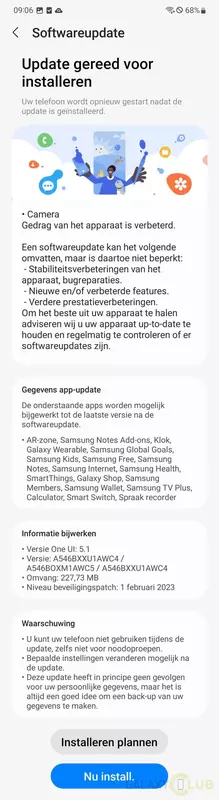 Nowa wersja oprogramowania ma numer budowy A546BXXU1AWC4 i waży około 230MB. Twórcy poprawili błędy w firmware, a także poprawili działanie aparatu w smartfonie. Ponadto Samsung zaktualizował autorskie aplikacje. Na przykład Samsung Notes, Clock, Wearable, SmartThings, Galaxy Shop, Samsung Members czy Wallet.