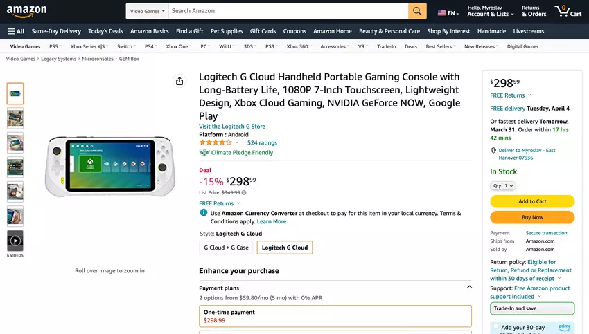 Logitech G Cloud Gaming Handheld na Amazon: konsola do gier Nvidia Geforce Now, Steam, Xbox Cloud i Google Play Store za 51 dolarów taniej