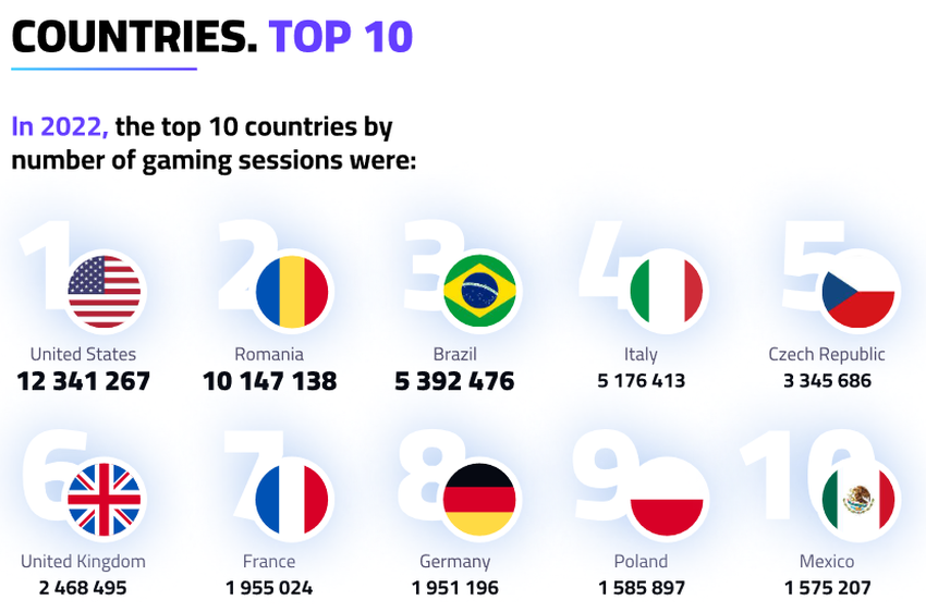 Artem Skoryy: Teraz pierwsza piątka krajów pod względem liczby sesji gier to USA, Rumunia, Brazylia, Włochy i Czechy.