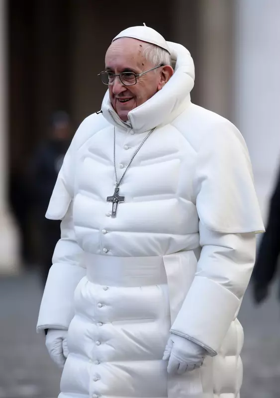 SI stworzyła również obrazy papieża Franciszka w stylowej puchowej kurtce Balenciaga.