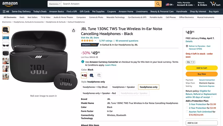 Słuchawki JBL Tune 130 NC TWS są już dostępne w promocyjnej cenie na Amazonie.