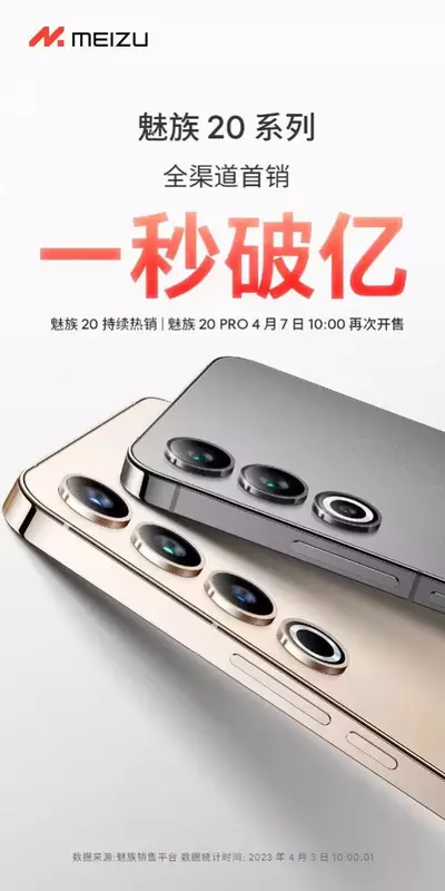 Firma oficjalnie poinformowała, że udało jej się wygenerować ponad ¥100 mln (14,52 mln dolarów) przychodu w ciągu 1 sekundy od rozpoczęcia sprzedaży. Meizu 20 jest wyceniony od 435 dolarów, a najdroższa wersja Pro została wyceniona na 700 dolarów. Oznacza to, że firma sprzedała od 20 700 do 33 300 smartfonów.