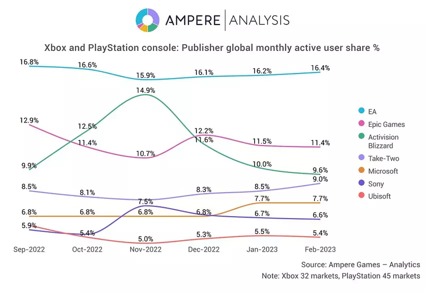 Firma Ampere Analysis przeprowadziła badanie mające na celu ustalenie, gry którego wydawcy cieszą się największym zainteresowaniem użytkowników konsol Xbox i PlayStation.