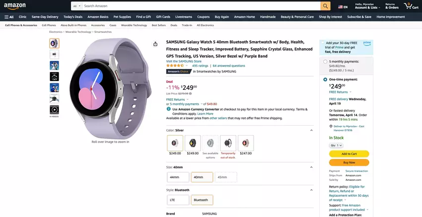 Oprócz smartfona Galaxy A54, Amazon sprzedaje obecnie ze zniżką smartwatch Galaxy Watch 5.