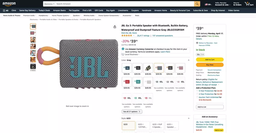 JBL Go 3 kompaktowy głośnik bezprzewodowy z ochroną IP67 jest na sprzedaż na Amazon za $39.95 ($10 off)